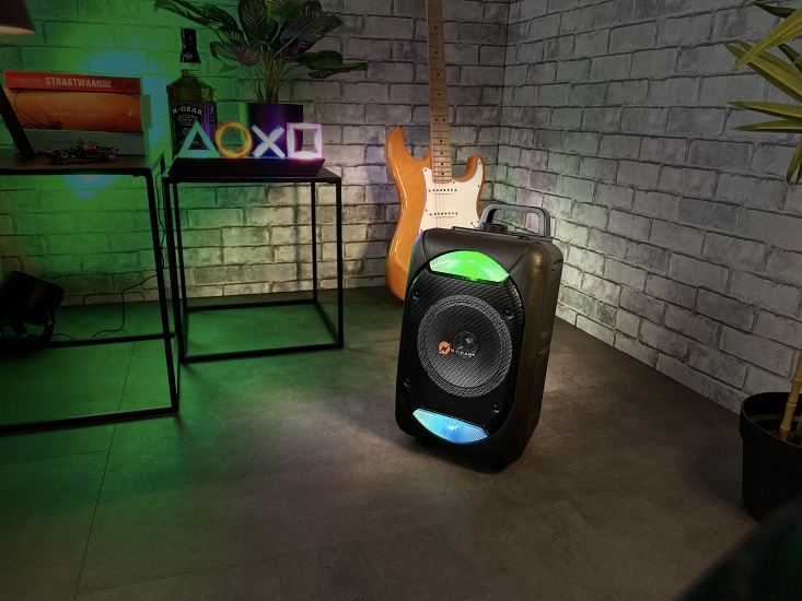 Mit dem neuen FLASH 610 von N-GEAR haben Sie die Party in der Hand! Der FLASH 610 hat eine Leistung von 100 Watt mit einem 6" Zoll (16 cm) Woofer und eine Spielzeit von nicht weniger als 6 Stunden! Schließen Sie Ihr Handy und/oder Tablet über Bluetooth an und singen Sie Ihre Lieblingssongs über das mitgelieferte Mikrofon mit. An der Vorderseite können Sie auch eine SD-Karte, ein USB- oder ein AUX-Gerät anschließen! Starker Sound, Partymodus, Karaokemodus, kabelloser Spaß, einfach zu bedienen, einfach aufzuladen, einfach anzuschließen, einfach zu feiern.